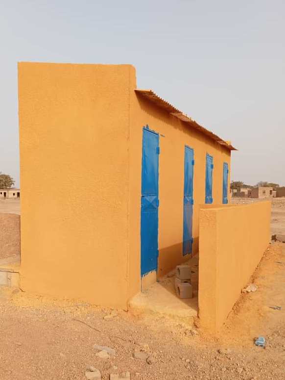 En de gemeente Ouagadougou schenkt nu, naast een waterpomp ook een toilet, die is nu in aanbouw.